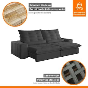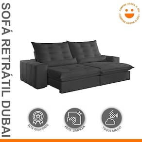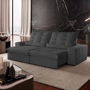 Experimente o máximo em conforto e estilo com nosso sofá retrátil e reclinável, o epítome do luxo moderno para sua sala de estar. Este sofá é mais do que um simples móvel; é um convite para o relaxamento supremo. Com seu design elegante e estofamento de alta qualidade, ele não só adiciona um toque de sofisticação ao seu espaço, mas também oferece a versatilidade de se ajustar às suas necessidades. Recline-se e relaxe após um longo dia de trabalho, ou estenda o sofá para receber seus convidados com conforto e hospitalidade. Produto Montado: Sim Acompanha Almofadas extras: Não Almofada do assento: Fixa Almofada do encosto: Removível Altura do assento até o chão: 45.0000 Altura do Encosto: 68 cm Altura dos Pés: 2,5 cm Ambiente Principal: Sala de Estar codigo_ean: 7909903646182 Complexidade da Montagem: Baixa: pode ser montado por uma pessoa sozinha Cor: Veludo Jolie/Grafite Cor do Produto: Veludo Jolie/Grafite Densidade do Assento: D-26 Enchimento do Assento: Espuma Enchimento do Encosto: Fibra Siliconada Firmeza do Assento: Firme Itens Inclusos: 1 Sofá e manual de instrução. Linha ou Coleção: Dubai Manual de Montagem e Instalação: https://product-hub-prd.madeiramadeira.com.br/903871/documents/ef406e0b-1dca-4678-9a96-235cf97bfaac19019421.pdf Material dos Pés: Madeira Montagem Flex: Não Necessita Montagem: Sim Peso: 120 kg Pet Friendly: Não Possui Baú: Não Possui Percintas Elásticas: Sim Possui Pés: 08 Possui Rodízio: Sim Profundidade Quando Estendido: 175 cm Recomendações de Uso, Manutenção e Limpeza: Para limpar, utilize pano seco ou papel absorvente. Não armazenar em local úmido. Não usar produtos químicos como detergente, cloro, alvejantes entre outros. Evitar exposição a luz solar direta por longos períodos. O consumidor perderá total garantia se for detectado dano no produto causadas por animais! Revestimento do Braço: Espuma , manta acrilica Rodízio com Trava: Não Sistema de Montagem: Encaixe. Suporta Até (kg): 120 kg Tecido Predominante: Veludo Tipo de Encosto: Regulável Tipo de Mola: Molas Ensacadas (Molas ensacadas)