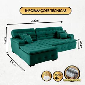 Sofá Retrátil e Reclinável Com Chaise Orlando 2.20x2.10m- Sofisticato