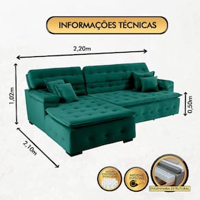Sofá Orlando Retrátil, Reclinável e Chaise 2.20x2,10m – Sofisticato