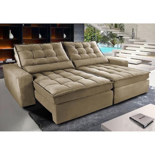 Sofá Retrátil E Reclinável Com Molas Ensacadas Cama Inbox Gold 2,72m Tecido Suede Velusoft Castor