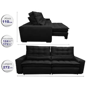 Sofá Retrátil e Reclinável com Molas Ensacadas Cama inBox Gold 2,72m Tecido Suede Velusoft - Preto