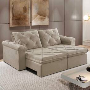 Material: Produto feito com madeira de reflorestamento e revestido em veludo 100% poliéster. Possui assento retrátil pillow de 16cm de espuma contínua D28 supersoft, além de molas de aço para a sustentação do assento, garantindo o conforto e durabilidade do produto. Nos braços, o pillow de fibra de silicone garante o conforto e o design marcante do produto. O encosto é reclinável em 5 posições e possui enchimento de fibra de silicone. Conta ainda com rodinhas de silicone nos módulos retráteis, pés de madeira e costura pespontada invertida nos detalhes do assento, encosto e braço. Conta ainda com uma tomada USB dupla bivolt para carregamento de dispositivos móveis.