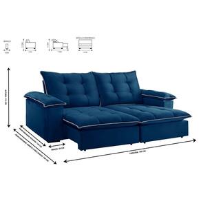 Dimensões: Altura: 112 cm Largura: 180 cm Profundidade Fechado: 120 cm Profundidade Aberto: 180 cm -com encosto reclinado- Peso: 85 kg