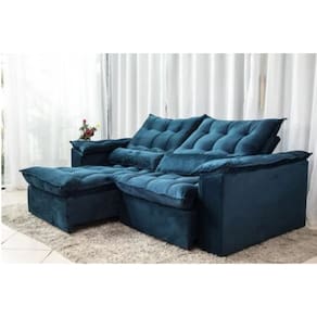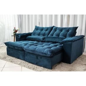 Sofá Retrátil e Reclinável Ipanema 1,50m em Tecido Veludão C/Pillow nos Braços - Montagem Inclusa - Azul
