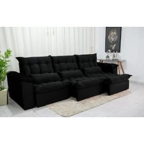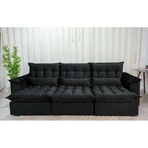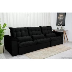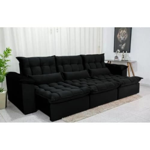 Sofá Retrátil e Reclinável Ipanema 2,10m em Tecido Veludão C/ 03 Módulos - Montagem Inclusa - Preto