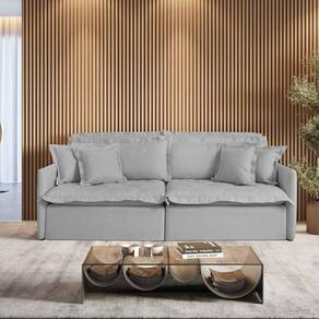 Material: Produto feito com madeira de reflorestamento e revestido em linho 100% poliéster. Possui no assento retrátil Pillow de 16 Cm de espuma contínua D28 supersoft, garantindo o conforto e durabilidade do produto. O encosto possui almofadas de fibra de silicone. Possui ainda pés de madeira e costura pespontada.