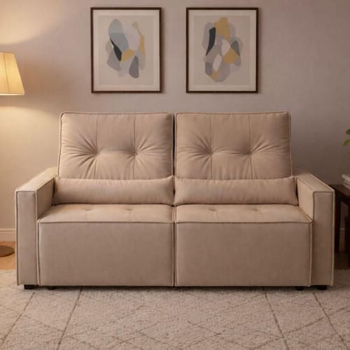 Com assento retrátil e encosto reclinável, o modelo se adapta facilmente às suas necessidades, oferecendo máximo bem-estar para assistir TV, relaxar ou receber visitas. Sua estrutura é produzida em madeira de reflorestamento tratada, garantindo resistência e durabilidade no dia a dia.