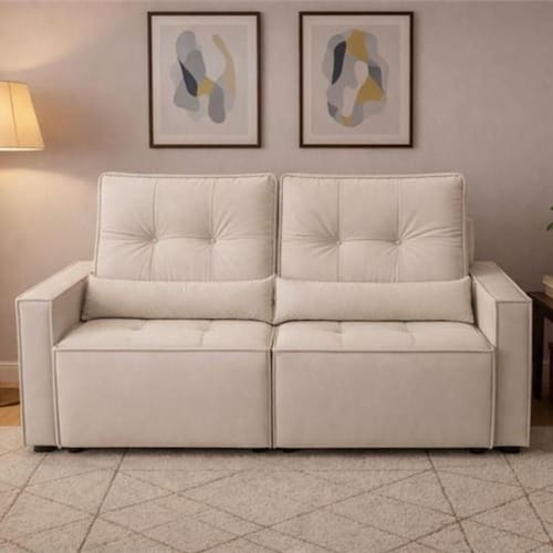 Com assento retrátil e encosto reclinável, o modelo se adapta facilmente às suas necessidades, oferecendo máximo bem-estar para assistir TV, relaxar ou receber visitas. Sua estrutura é produzida em madeira de reflorestamento tratada, garantindo resistência e durabilidade no dia a dia.