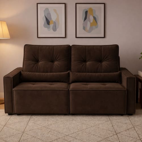 Com assento retrátil e encosto reclinável, o modelo se adapta facilmente às suas necessidades, oferecendo máximo bem-estar para assistir TV, relaxar ou receber visitas. Sua estrutura é produzida em madeira de reflorestamento tratada, garantindo resistência e durabilidade no dia a dia.
