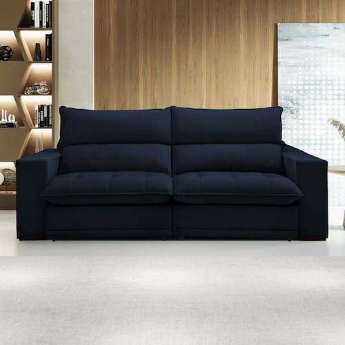O(a) Sofá Retrátil e Reclinável Martinho 250cm Veludo Azul - Celflex é produzido em Eucalipto na escala de brilho Fosco, e possui um grau de dificuldade de montagem: Médio.