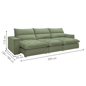 O(a) Sofá Retrátil e Reclinável Martinho 350cm Boucle Verde - Celflex é produzido em Eucalipto na escala de brilho Fosco, e possui um grau de dificuldade de montagem: Médio.