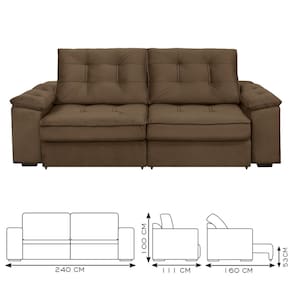 O Sofá Zurique é sinônimo de conforto e durabilidade. Produzido com madeira de eucalipto reflorestada, ele une sustentabilidade e estrutura sólida, garantindo um produto resistente e de longa vida útil. Seus assentos contam com molas ensacadas molas espirais, reforçadas por espuma soft, retráteis, oferecendo um conforto envolvente e suporte ideal para até 120 kg por assento perfeito para quem busca firmeza sem abrir mão da maciez. O encosto, reclinável, preenchido com fibra e flocos, proporciona aquele toque aconchegante que convida ao relaxamento. Design elegante, conforto inigualável e qualidade de fabricação: o Zurique transforma qualquer ambiente em um espaço de bem-estar e sofisticação. Produto Montado: Não Acompanha Almofadas extras: Não Almofada do assento: Fixa Almofada do encosto: Fixa Altura do assento até o chão: 53.0000 Altura do Encosto: 64 cm Altura dos Pés: 5 cm Altura Máxima dos Pés: 5.0000 Ambiente Principal: Sala de Estar codigo_ean: 7900288276629 Cor: Marrom Cor do Produto: Marrom Densidade do Assento: D-26 Densidade do Encosto: Camadas de Densidades Diferentes Enchimento do Assento: Espuma Enchimento do Encosto: Fibra Siliconada Estilo de Braço: Braços Quadrados Gramatura do Tecido: 240 g/m² Informações Complementares: Suporte de 120kg por assento Itens Inclusos: 1 Sofá e Kit Ferragens Linha ou Coleção: Zurique Manual de Especificação Técnica: https://product-hub-prd.madeiramadeira.com.br/286552434/documents/c975a0d5-9ed4-4dd7-9fa5-4d86cae4bc553294844649717616037281311.pdf Manual de Montagem e Instalação: https://product-hub-prd.madeiramadeira.com.br/286552434/documents/66ba7322-4753-4922-a07f-c773a62efb2f3294843649717616037262401.pdf Marca: RBF Material dos Pés: PVC Necessita Montagem: Não Origem do Produto: Nacional Peso: 55.0000 Peso Suportado por m²: 120 kg/m² Pet Friendly: Não Possui Mola: Sim Possui Percintas Elásticas: Sim Possui Pés: 05 Possui Rodízio: Sim Profundidade Quando Estendido: 160 cm Recomendações de Uso, Manutenção e Limpeza: Aspirar produto para eliminar poeira, utilizar um pano levemente umedecido com água e sabão neutro, seguido de pano seco.Não limpar com escovas ou produtos abrasivos Rodízio com Trava: Sim Suporta Até (kg): 240 kg Tecido Predominante: Veludo Tipo de Encosto: Regulável Tipo de Mola: Molas Ensacadas Tipo de Sofá: Sofá Comum Marca: Não Informado