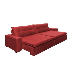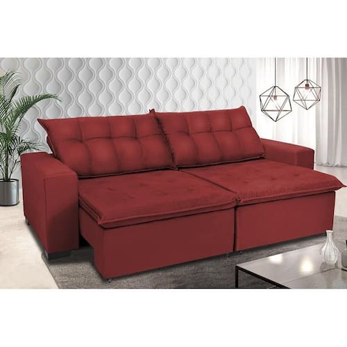 Sofá Retrátil E Reclinavel Oklahoma 2,12 Mts Com Molas E Pillow No Assento Tecido Suede Vermelho Decore sua sala de estar com sofisticação e qualidade, sem abrir mão do conforto. Moderno e aconchegante, o Sofá Oklahoma é produzido com madeira maciça (eucalipto) e possui design moderno com traços retos. Ótima opção para sua sala ou até mesmo escritório. O que o torna especial são seus assentos retráteis e seus encostos reclináveis que proporcionam uma acomodação extremamente confortável. Desfrutar de um bom filme na sala jamais será como antes!