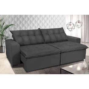 Sofá Retrátil E Reclinavel Oklahoma 3,02 Mts Com Molas E Pillow No Assento Tecido Suede Cinza Procurando novidade e sofisticação em um estofado? Conheça o Sofá Oklahoma. Este estofado possui 3,02m de comprimento e aberto pode ser uma cama gigante. Seu revestimento é em tecido Suede, seus assentos possuem molas bonnel, seus encostos são em fibra de silicone macios como um travesseiro. Tudo isso faz deste produto sinônimo de sofisticação e extremo conforto. Seu design com encosto reclinável e assentos retráteis tornam este produto muito espaçoso para você e sua família! "Desfrutar de um bom filme em sua sala não será mais como antes"