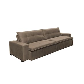 Características: -Encosto Reclinável com 5 posições, almofadas fixas compostas de 70% fibra siliconada e 30% flocos de espuma. Percintas elásticas e manta siliconada para maior conforto. -Assentos: Retráteis com espuma D33, Molas espiral, percintas elásticas com feltro para proteger do atrito com as molas. -Braços: Com 25cm de largura e com espuma D23 -Fixação: Grampos galvanizados -Estrutura de Madeira maciça 100% eucalipto de reflorestamento, produto ecologicamente correto -Tecido suede pluma com toque aveludado