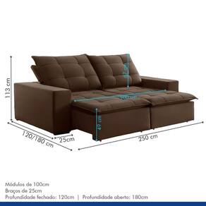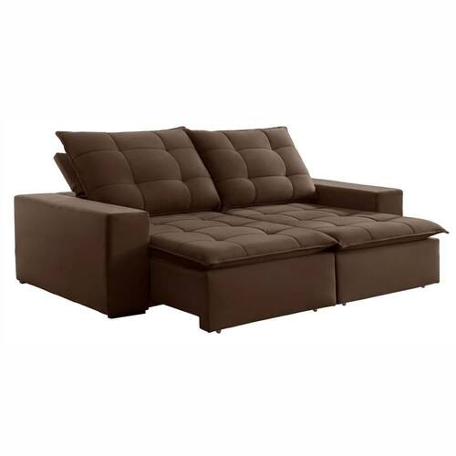 Sofá Retrátil e Reclinável Paris Veludo Marrom 2,50M