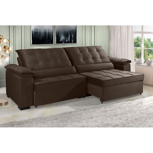 Sofá Retrátil e Reclinável RENEW 2.30m ESTILO ESTOFADOS - França Velusoft Cor "Marrom"