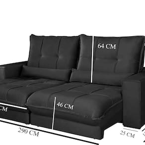 • Design sofisticado: Disponível em várias cores e acabamentos, para combinar com a decoração da sua sala. Acompanha Almofadas extras: 02 Almofada do assento: Fixa Almofada do encosto: Fixa Altura do assento até o chão: 46 cm Altura do Encosto: 64 cm Altura dos Pés: 5 cm Ambiente Principal: Sala de Estar Cor: Preto Cor do Produto: Preto Densidade do Assento: D-28 Densidade do Encosto: D-28 Enchimento do Assento: Espuma Enchimento do Encosto: Fibra Siliconada Estilo de Braço: Braços Quadrados Firmeza do Assento: Médio Informações Complementares: Molas Bonnel e Molas Ensacadas - Duplo Molejo Itens Inclusos: Sofá Thor Material dos Pés: Madeira Montagem Flex: Não Necessita Montagem: Não Nível de Conforto: Confortável Origem do Produto: Nacional Peso: 50 kg Pet Friendly: Não Porta Copos: Não Possui Baú: Não Possui Entrada USB: Não Possui Percintas Elásticas: Sim Possui Pés: 08 Possui Rodízio: Sim Profundidade Quando Estendido: 180 cm Recomendações de Uso, Manutenção e Limpeza: Limpar com pano levemente umedecido. Não utilzar produtos abrasivos. Revestimento do Braço: Veludo Rodízio com Trava: Não Suporta Até (kg): 120 kg Tecido Predominante: Veludo Tipo de Encosto: Regulável Tipo de Mola: Molas Ensacadas Marca: DECOR LAR