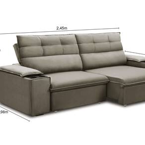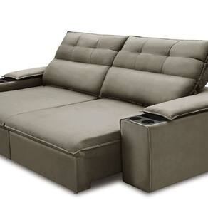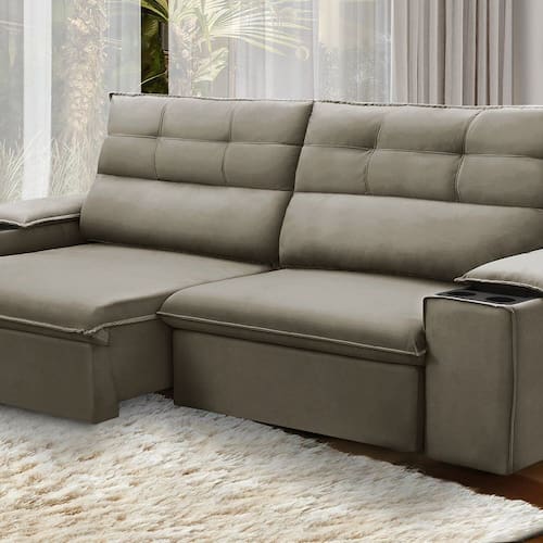O sofá retrátil e reclinável Vannes é a escolha perfeita para quem busca conforto e estilo em ambientes compactos. Com um design sofisticado e prático, ele conta com porta-copos, tornando-se ideal para relaxar na frente da TV ou desfrutar de momentos descontraídos com amigos e familiares. Fabricado com molas espirais e espuma D-26 de alta qualidade, oferece uma experiência acolhedora que transforma sua sala de estar em um espaço ainda mais aconchegante e repleto de personalidade. Para completar a decoração, combine-o com uma manta suave e almofadas que refletem seu estilo pessoal, criando um verdadeiro refúgio de charme e conforto em seu lar! Acompanha Almofadas extras: Não Almofada do assento: Fixa Almofada do encosto: Fixa Altura do assento até o chão: 47 cm Altura do Braço: cm Altura do Encosto: 60 cm Altura dos Pés: 3 cm Ambiente Principal: Sala de Estar codigo_ean: 7900288083005 Complexidade da Montagem: Baixa: pode ser montado por uma pessoa sozinha Cor: Castor Cor do Produto: Castor Densidade do Assento: D-26 Densidade do Encosto: Camadas de Densidades Diferentes Enchimento do Assento: Espuma Enchimento do Encosto: Fibra Siliconada Estilo de Braço: Braços Quadrados Firmeza do Assento: Médio Informações Complementares: ESTRUTURA: Madeira de lei (Eucalipto) devidamente tratada e aparelhada com reforços e cantoneiras e chapas em MDF.ENCOSTO: Reclinável por meio de catraca metálica de 5 estágios, composto por 100% de fibra siliconada.ASSENTO: Retrátil em tubo, composto por Itens Inclusos: 1 Sofá, 1 Manual de Montagem, 1 Manual de Garantia Largura do Braço: cm Linha ou Coleção: Retrátil e Reclinável Marca: Ferguile Material dos Pés: Madeira Necessita Montagem: Sim Nível de Conforto: Confortável Origem do Produto: Nacional Peso: 80 kg Peso Suportado por m²: 100 kg/m² Pet Friendly: Não Possui Mola: Sim Possui Percintas Elásticas: Sim Possui Pés: 05 Possui Rodízio: Sim Profundidade Quando Estendido: 137 cm Recomendações de Uso, Manutenção e Limpeza: Para remoção de poeira, utilizar aspirador de pó em velocidade baixa ou escova com filamentos ultra macios. Para a remoção de líquidos e sujeira derramados de forma acidental, retirar delicadamente sem comprimir o tecido, utilizando pano limpo ou papel absorvente. Não é recomendado utilizar produtos de limpeza domésticos. Para evitar a alteração na cor do revestimento, o estofado não deverá ser exposto ao sol ou a alta luminosidade. Evite o contato do estofado com objetos cortantes, perfurantes e pontiagudos. Para movimentar o estofado de forma correta, levante-o segurando por baixo. Rodízio com Trava: Não Sistema de Montagem: Encaixe dos encostos Suporta Até (kg): 100 kg Tecido Impermeável: Não Tecido Predominante: Veludo Tipo de Encosto: Regulável Tipo de Mola: Molas Espirais Tipo de Sofá: Sofá Comum