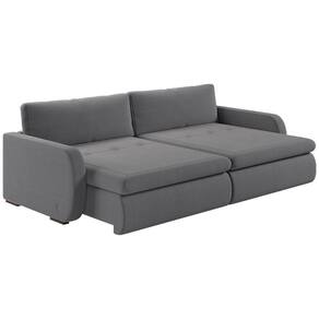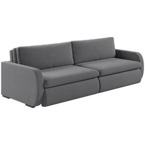 Material: O sofá possui estrutura em madeira de reflorestamento, assento retrátil com mecanismo metalico, pillow nos assentos com 16cm de espuma contínua D28 Supersoft sustentado por 4 molas de aço, encosto reclinável em 3 posições, almofadas soltas com enchimento em fibra de silicone. O revestimento é em linho 100% poliéster, os módulos retráteis contam com rodinhas de silicone, os pés são de madeira, unindo conforto, resistência e elegância.