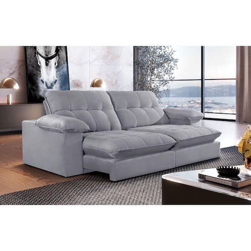 Suavidade e conforto em sua casa com o Sofa JUIZ DE FORA que possui encosto reclinavel, assento com Pillow de molas ensacada, fibra siliconada, assento retratil com rodizios que facilitam seu movimento.
