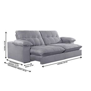 Dimensoes: Altura: 112 cm Largura: 230 cm Profundidade Fechado: 120 cm Profundidade Aberto: 180 cm (com encosto reclinado) Peso: 100 kg