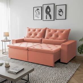 ATENÇÃO: IMAGENS MERAMENTE ILUSTRATIVAS. AS CORES PODEM VARIAR DE ACORDO COM A TELA, MONITOR, ILUMINAÇÃO DO AMBIENTE OU PERCEPÇÃO VISUAL.Sofà RetrÃtil Premium 150m em Suede Laranja ReclinÃvel e com 2 MÃdulos MilÃo Laranja