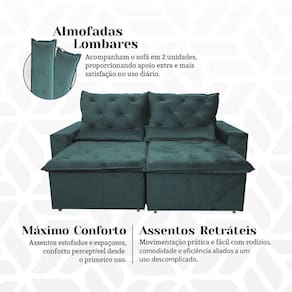 ATENÇÃO: IMAGENS MERAMENTE ILUSTRATIVAS. AS CORES PODEM VARIAR DE ACORDO COM A TELA, MONITOR, ILUMINAÇÃO DO AMBIENTE OU PERCEPÇÃO VISUAL.Sofà Retratil Premium 150m em Suede ReclinÃvel e com 2 MÃdulos MilÃo Verde