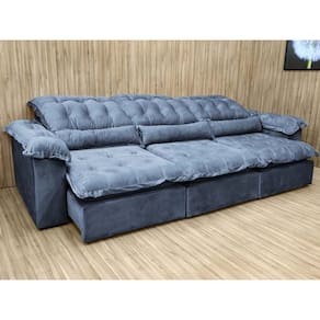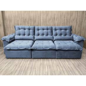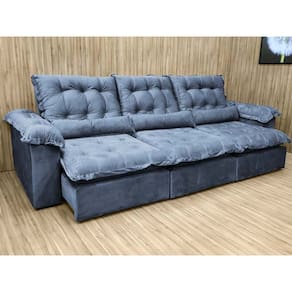 Sofá Retrátil Reclinável 2,70 m Cinza 330 Florença Plus Nosso Sofá Retrátil Reclinável Florença Plus Cinza é um produto moderno, com design elegante que combina com qualquer ambiente e deixa sua sala ainda mais linda e aconchegante. MEDIDAS DO SOFÁ: Altura: 1.12 mLargura: 2.70 mProfundidade fechado: 1.22 mProfundidade aberto: 1.60 m Pillow do assento:21 cm Assento: O assento retrátil contem espuma 28 soft, percinta elástica e molas bonel, que proporcionam uma acomodação extremamente confortável. Encosto: O encosto reclinável é feito com espuma 100% fibra de silicone. Além disso, as catracas são de ferro blindado com várias posições de inclinação, trazendo mais conforto para você na hora do descanso. Estrutura: Sua estrutura é com madeira de eucalipto, 100% reflorestada e seca em estufa, e os pés são produzidos em madeira e rodízio de silicone Revestimento: O revestimento é em tecido veludão Premium, deixando a superfície do sofá muito mais macia. Braços: Braços com Pillow top de 15 cm .
