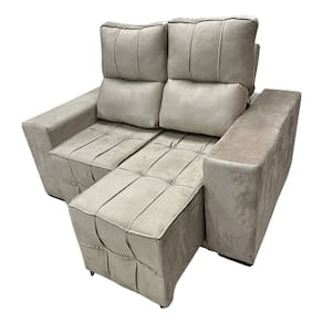 Capacidade: Suporta até 100kg por assento Assento: Espuma D23 com percintas elásticas Encosto: Removível, com fibras e flocos Modelo: Retrátil com rodízios Percintas: Elásticas Tecido: Suede Estrutura: Madeira Eucalipto e OSB Revestimento: Toque macio e resistente Quantidade de Lugares: 2 Peso aproximado: 70kg Pés: 4 unidades Rodízios: 4 unidades Características do Braço: Fixo Medidas (Altura x Largura x Comprimento): Fechado: 106 x 150 x 118 cm Aberto: 106 x 150 x 140 cm