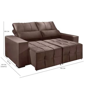 Capacidade: Suporta até 100kg por assento Assento: Espuma D23 com percintas elásticas Encosto: Removível, com fibras e flocos Modelo: Retrátil com rodízios Percintas: Elásticas Tecido: Suede Estrutura: Madeira Eucalipto e OSB Revestimento: Toque macio e resistente Quantidade de Lugares: 2 Peso aproximado: 70kg Pés: 4 unidades Rodízios: 4 unidades Características do Braço: Fixo Medidas (Altura x Largura x Comprimento): Fechado: 106 x 150 x 118 cm Aberto: 106 x 150 x 140 cm