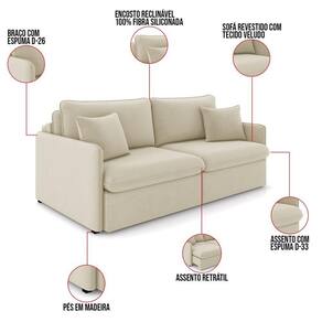 O Sofá Retrátil e Reclinável Maili 2 Lugares é a escolha perfeita para quem busca conforto e estilo em um só móvel. Com 154 cm de largura, revestido em tecido Veludo, ele se destaca por sua aparência moderna e aconchegante. Produzido em madeira de lei (eucalipto), devidamente tratada e aparelhada, com reforços de cantoneiras e chapas em MDF, ideal para suportar o uso diário e manter a integridade do sofá. A estrutura metálica do mecanismo proporciona resistência e longa durabilidade, permitindo que o sofá se transforme em cama de forma segura e com facilidade. Para proporcionar conforto máximo, o assento é composto por espumas D33, molas ensacadas, molas espirais e manta acrílica, apoiadas em cintas metálicas, enquanto o encosto conta com cintas metálicas e 100% fibra siliconada, oferecendo um toque macio e relaxante. Os braços são feitos com espuma D26 para garantir um apoio confortável. O encosto reclinável possui sistema de catraca com 3 posições, permitindo ajustar o sofá de acordo com suas preferências de conforto. As almofadas soltas decorativas, além de realçar o estilo do sofá, oferecem flexibilidade para ajustar o conforto e personalizar o visual. Os pés em madeira na completam o design sofisticado, dando um toque elegante ao ambiente. Este maravilhoso sofá é ideal para momentos de descanso, seja assistindo a um filme ou simplesmente relaxando após um dia longo. Transforme seu espaço com o Sofá Maili. Aproveite agora! OBSERVAÇÃO IMPORTANTE: A é realizada no informado, não realizamos o para andares superiores, como subir escadas, elevadores ou guinchos. Não realizamos montagens, desmontagens ou instalações. Todos esses serviços são de responsabilidade do comprador. Dimensões do Produto: Altura Total: 90 cm Largura Total: 154 cm Profundidade Total aberto: 155 cm Profundidade Total fechado: 115 cm Peso: 84 kg Outras Medidas: Largura total livre do assento: 140 cm Largura por lugar: 70 cm Profundidade total do assento aberto: 142 cm Profundidade total do assento fechado: 53 cm Altura do assento ao chão: 47 cm Altura do encosto: 50 cm Espessura do Braço: 7 cm Pillow: 16 cm Especificações do Produto: Estrutura: Madeira de Eucalipto/MDF. Material da Espuma: Assento D - 33; Encosto 100% Fibra Siliconada; Braço D - 26 Revestimento: Veludo Possui Pés: Sim Tipo de Pés: Pés de Madeira na Possui Rodízios: Não Diferenciais: Encosto Reclinável Catraca 03 Posições Peso Suportado: 150 Kg por assento. Quantidade de Lugares: 2 Lugares Tipo de Encosto: Reclinável. Tipo de Assento: Retrátil. Diferenciais: Almofadas Decorativas Soltas; Assento com percintas elasticas, molas espirais ensacadas e manta acrílica. Encosto reclinável com percintas elasticas. Manual de Montagem: Sim Montagem: O produto é enviado montado, sendo necessário somente parafusar os pés e fazer a junção dos módulos. Garantia: 90 dias contra de fabricação Instruções de Limpeza: Utilizar um pano limpo e levemente úmido Você irá Receber: 01 Sofá Entregue em: 02 Volumes
