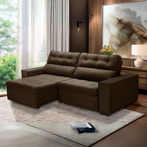 Sofá Retrátil e Reclinável 2 Lugares 2,30m Vitória em Veludo Marrom