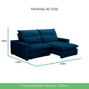 Altura: 1,08 m | Largura: 2,00 m | Profundidade Fechado: 1,20 m | Aberto: 1,80 m