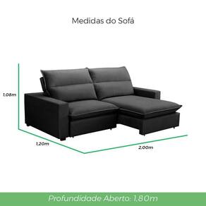 Altura: 1,08 m | Largura: 2,00 m | Profundidade Fechado: 1,20 m | Aberto: 1,80 m