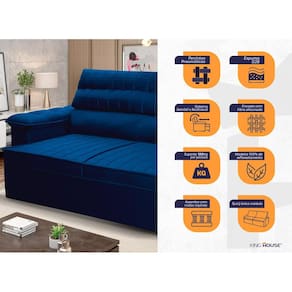 Ele possui encosto reclinável em cinco posições, proporcionando-lhe mais conforto na hora do descanso. Não para por aí: seu assento retrátil conta com espuma D23 e molas bonnel, transformando seu sofá em uma verdadeira cama para assistir seu filme preferido.