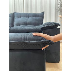 Sofá Retrátil Reclinável 2,00 m Preto 504 Tijuca Plus Nosso Sofá Retrátil Reclinável Tijuca Plus é um produto autêntico, com design elegante que combina com qualquer ambiente e deixa sua sala ainda mais linda, aconchegante e moderna. MEDIDAS DO SOFÁ: Altura: 1.10 m Largura: 2.00 m Profundidade Sofá fechado: 90 cm Sofá aberto Reclinável da ponta da almofada até o encosto: 1.60 m Assento: O assento retrátil contem espuma AG 33 Fibra de silicone e percinta elástica que proporcionam uma acomodação extremamente confortável. Encosto: O encosto reclinável é feito com espuma 100% fibra de silicone. Além disso, as catracas são de ferro blindado com várias posições de inclinação, trazendo mais conforto para você na hora do descanso. Estrutura: Sua estrutura é com madeira de eucalipto, 100% reflorestada e seca em estufa, e os pés são produzidos em madeira e rodízio de silicone Revestimento: O revestimento é em tecido veludão, deixando a superfície do sofá muito mais macia. Braços: Braços com Fibra de silicone. * As imagens dos produtos são meramente ilustrativas. As cores podem sofrer variações dependendo da luminosidade, tipo de câmera ou mesmo da visualização das imagens em computadores, notebooks com telas LCD ou LED, tablets ou smartphones, dependendo da quantidade de pixels, podendo deixar as imagens com cores mais opacas ou cores mais vibrantes. Marca: Não Informado
