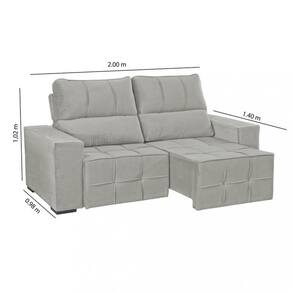 Características: Espuma: R 26 Molas Espirais Percintas: Elásticas Madeira: Eucalipto de Reflorestamento Tratado Encosto: 50 fibra / 50 flocos Reclinável: Catraca com 5 posições Pés: Cantoneira de Plástico Tecido: Veludo Altura do assento: 0.44 cm