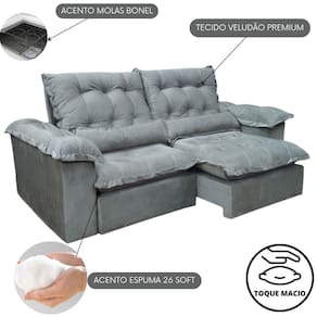 Sofá retrátil Sofá reclinável Sofá Florença Plus Sofá 2,30m Sofá elegante Sofá aconchegante Sofá moderno Sofá confortável Sofá de tecido veludão Sofá com pillow top Móveis de qualidade Decoração de sala Mobiliário estiloso Estofado retrátil Estofado reclinável Estofado Florença Plus Estofado 2,30m