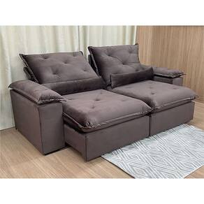 Sofá Retrátil Reclinável 2,30 m Marrom 500 Zuqui Plus Nosso Sofá Retrátil Reclinável Zuqui Plus é um produto moderno, com design elegante que combina com qualquer ambiente e deixa sua sala ainda mais linda e aconchegante. MEDIDAS DO SOFÁ: Altura: 1.00 mLargura: 2.30 mProfundidade fechado: 1.12 mProfundidade aberto: 1.60 m Assento: O assento é retrátil com espuma 28, contem também percinta elástica e molas bonel, que proporcionam uma acomodação extremamente confortável. Almofadas com fibras de poliéster siliconada. Encosto: O Encosto reclinável com espuma 100% fibra de silicone, trazendo mais conforto para você na hora do seu descanso. Braços: Os Braços são com espuma fibra de silicone Estrutura: Sua estrutura é com madeira de eucalipto, 100% reflorestada e seca em estufa, e os pés são produzidos em madeira e rodízio de silicone Revestimento: O revestimento é em tecido veludão Premium, deixando a superfície do sofá muito mais macia. * As imagens dos produtos são meramente ilustrativas