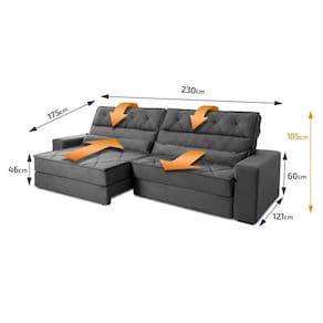 Ele possui encosto reclinável em cinco posições, proporcionando-lhe mais conforto na hora do descanso. Não para por aí: seu assento retrátil conta com espuma D33 e molas ensacadas, transformando seu sofá em uma verdadeira cama para assistir seu filme preferido.