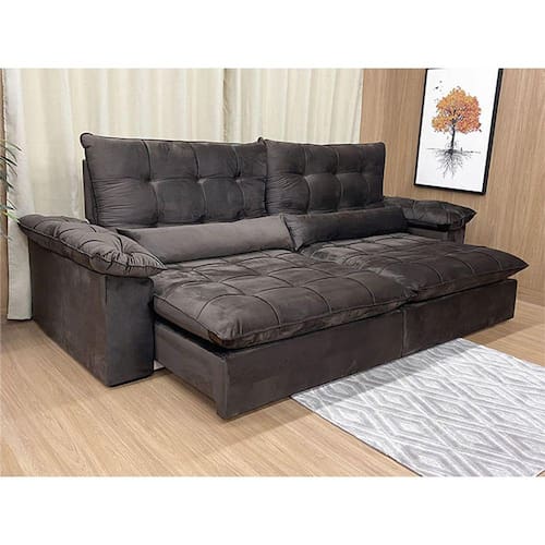 O Sofá Cama modelo Aurora é um modelo que oferece pra você e sua família, conforto, beleza e qualidade, além de ter algumas vantagens como aproveitamento de espaço, já que seu assento é retrátil e seu encosto reclinável. Acompanha com rineiras 100% fibra siliconada.