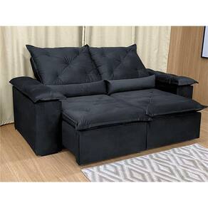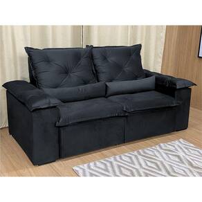 Sofá Retrátil Reclinável 2,50 m Preto 204 Athenas Nosso Sofá Retrátil Reclinável Preto Athenas é um produto moderno, com design elegante que combina com qualquer ambiente e deixa sua sala ainda mais linda e aconchegante. MEDIDAS DO SOFÁ: Altura: 1.10 mLargura: 2.50 mProfundidade fechado: 90 cmProfundidade aberto: 1.65 m Assento: O assento retrátil contem espuma om pilow top de 13 cm de altura, percinta elástica, que proporcionam uma acomodação extremamente confortável. Encosto: O encosto reclinável é feito com espuma 100% fibra de silicone. Além disso, as catracas são de ferro blindado com várias posições de inclinação, trazendo mais conforto para você na hora do descanso. Estrutura: Sua estrutura é com madeira de eucalipto, 100% reflorestada e seca em estufa, e os pés são produzidos em madeira e rodízio de silicone Revestimento: O revestimento é em tecido veludinho, deixando a superfície do sofá muito mais macia. Braços: Braços com Fibra de silicone. * As imagens dos produtos são meramente ilustrativas.