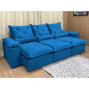 O revestimento é em tecido veludão Premium, deixando a superfície do sofá muito mais macia.