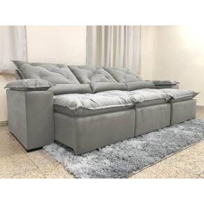Revestimento:O revestimento é em tecido veludinho, deixando a superfície do sofá muito mais macia.