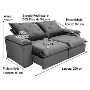 O assento com Pillow top 20cm é retrátil com espuma 28, contem também percinta elástica e molas bonel, que proporcionam uma acomodação extremamente confortável. Almofadas com fibras de poliéster siliconada.