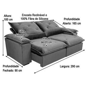 Sofá Retrátil Reclinável 2,90 m Bege 511 Zuqui Plus Nosso Sofá Retrátil Reclinável Zuqui Plus é um produto moderno, com design elegante que combina com qualquer ambiente e deixa sua sala ainda mais linda e aconchegante. MEDIDAS DO SOFÁ: Altura: 1.00 mLargura: 2.90 mProfundidade fechado: 0.90 mProfundidade aberto: 1.60 m Assento: O assento com Pillow top 20cm é retrátil com espuma 28, contem também percinta elástica e molas bonel, que proporcionam uma acomodação extremamente confortável. Almofadas com fibras de poliéster siliconada. Encosto: O Encosto reclinável com espuma 100% fibra de silicone, trazendo mais conforto para você na hora do seu descanso. Braços: Os Braços são com espuma fibra de silicone Estrutura: Sua estrutura é com madeira de eucalipto, 100% reflorestada e seca em estufa, e os pés são produzidos em madeira e rodízio de silicone Revestimento: O revestimento é em tecido veludão Premium, deixando a superfície do sofá muito mais macia.