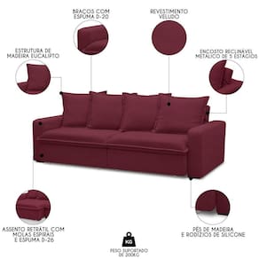 Que tal transformar a sua sala de estar em um ambiente mais aconchegante e sofisticado com o Sofá Retrátil Reclinável 3 Lugares 195cm Roma F05 Veludo Bordô, da Mpozenato?