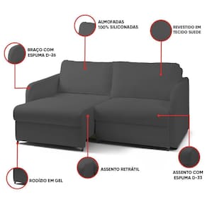 Sofá Retrátil Reclinável 3 Lugares 196cm Amsterdã Suede Grafite K01 - D'rossi O Sofá Amesterdã Reclinável Retrátil de 3 Lugares com 196cm, é a expressão máxima de conforto e versatilidade para sua sala de estar, apresentando um design moderno, elegante e de alta durabilidade, sua estrutura sem caixa traseira, revestido em Suede Grafite de toque aveludado, visivelmente macio; o assento oferece conforto superior com espuma D-33 e molas ensacadas, garantindo resistência ao uso contínuo e atingindo ampla profundidade quando aberto, transformando-se em uma convidativa superfície para relaxar; o encosto com fibra 100% siliconada e mecanismo reclinável de 3 posições proporciona aconchego e maciez envolventes, evidenciando o volume das almofadas quando fechado; o braço fino e delicadamente curvo, com espuma D-26, complementa o apoio sem sobrecarregar o visual; a qualidade e flexibilidade se unem à praticidade dos rodízios em gel integrados, facilitando a movimentação e assegurando a proteção do piso. Dimensões do Sofá: Altura Total: 90 cm Largura Total: 196 cm Profundidade Fechada: 108 cm Peso Total: 91 kg Outras Medias: Profundidade Total Aberta: 143 cm Espessura do Braço: 8 cm Altura do chão ao Assento: 47 cm Largura Livre de cada Assento: 90 cm Profundidade do Assento: 53 cm Altura do Encosto: 54 cm Especificações do Produto: Estrutura: Madeira de lei (eucalipto) tratado e chapas em MDF Revestimento: Suede Espuma do Assento/Encosto/ Braço: Enchimento em espuma D-33 e D-26 do Braço. Material da Espuma: Assento com molas ensacadas, percintas elásticas e mola espiral; Encosto com Fibra 100% siliconada. Possui Braços: Sim Tipo de Encosto: Mecanismo Reclinável com catraca e 3 posições. Detalhes/aplicações: Almofadas soltas no encosto com 23 cm de altura. Tipo de Assento: Mecanismo Retrátil Peso Suportado: Até 150 kg por assento É Giratória: Não Possui Pés: Sim Tipo de Pés: Fixo e rodízios em gel integrados para facilitar o movimento e o ajuste do sofá. Material dos Pés: Madeira, fixados com parafusos. Diferenciais: Estrutura sem caixa traseira; Conforto e flexibilidade, facilidade no deslocamento do sofá sem danificar o piso. Quantidade de Lugares: 3 Lugares Montagem: O produto é enviado montado, requer simples encaixes para instalação. Instruções de Limpeza: Utilizar um pano limpo e levemente úmido Quantidade de Volumes: 1 Caixa Medida das Embalagens: Caixa 1: 198 cm x 110 cm x 88 cm Peso Total das Embalagens: 93 kg Entrega: É feita somente até o térreo ou portaria. Confira sempre as medidas das embalagens para assegurar que o produto passe por portas e escadas do local.