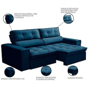 Muito mais versátil que o sofá tradicional, o sofá retrátil proporciona conforto e funcionalidade extra, já que você pode sentar, esticar as pernas e ainda deitar com espaço de sobra para assistir seu programa de favorito. Além disso, conta com uma estrutura robusta, tapeçaria em espuma de alta densidade e, ainda, revestimento em veludo suave e macio ao toque. Ahhh, e harmoniza facilmente com diversos estilos de decoração, graças às tonalidades sóbrias e atemporais. Em outras palavras, esse sofá 3 lugares será o ícone mais desejado na sua casa.